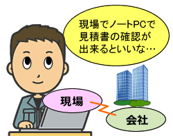 工事現場や外出先でノートパソコンなどを使用し、工事見積書や工事書類、図面、工事写真などを確認できるようにしたい!