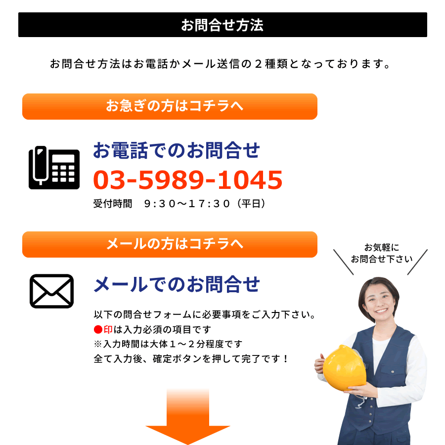 弊社へのお問い合わせは、入力フォームの所定項目をご入力いただき、個人情報の取り扱い関する下記の事項についてご同意の上、お問い合わせください。暗号化した入力フォームをページに埋め込めており、通信内容は暗号化して送信されます。こちらからしつこい営業等は一切行いませんので、お気軽にお問い合わせ下さい。お急ぎの際はお電話でも承っております。