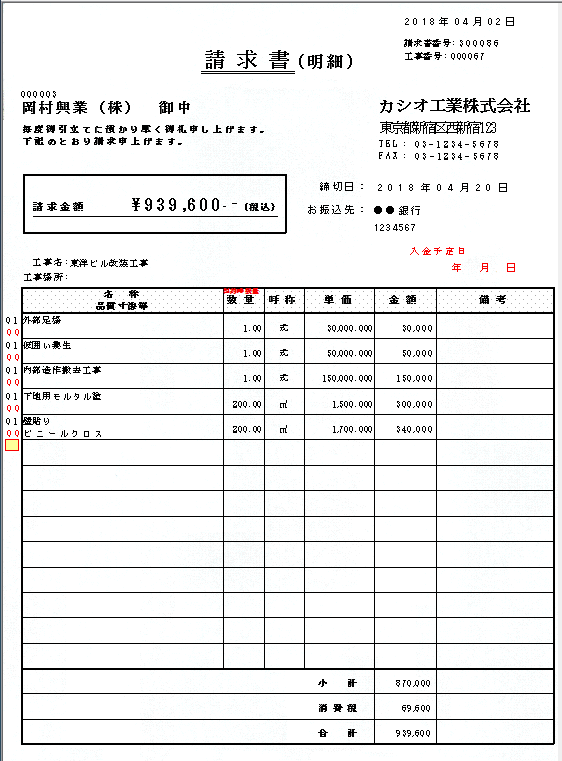| ① 工事別または、得意先別に請求書を作成できます。 |