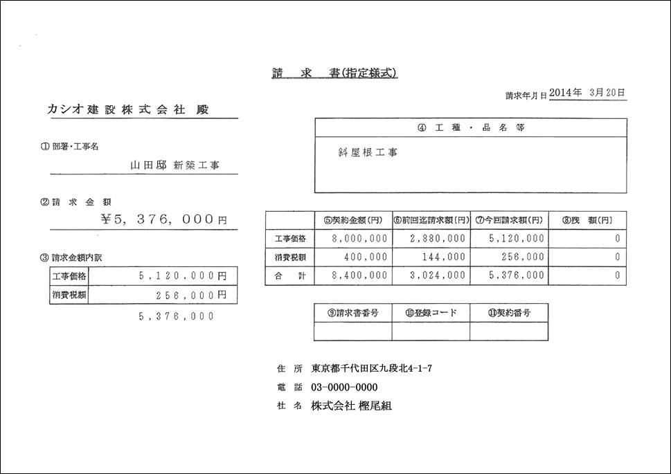 ④ 得意先別に複数の工事を1つの請求書にまとめることができます。 |